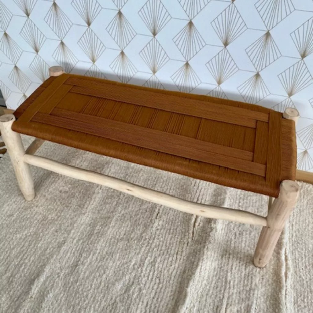 Banc tressé en corde crème
