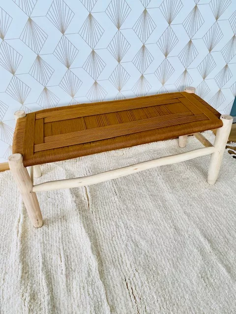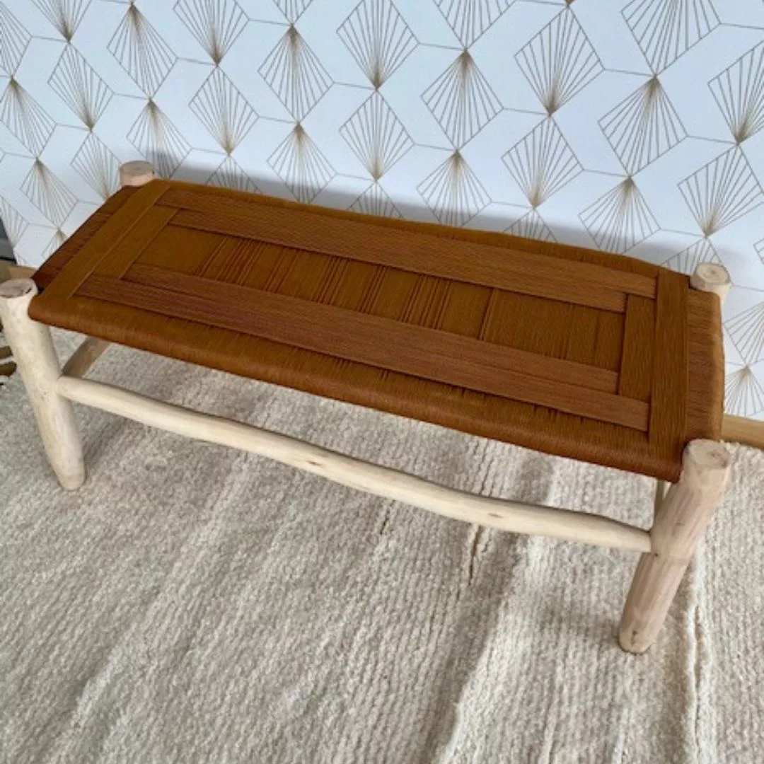 Ce Banc tressé en corde vert curcuma  marocain au mélange de matières brutes donnera un vrai charme et du caractère à votre intérieur. Ses tons curcuma se marieront facilement avec les couleurs de votre choix.