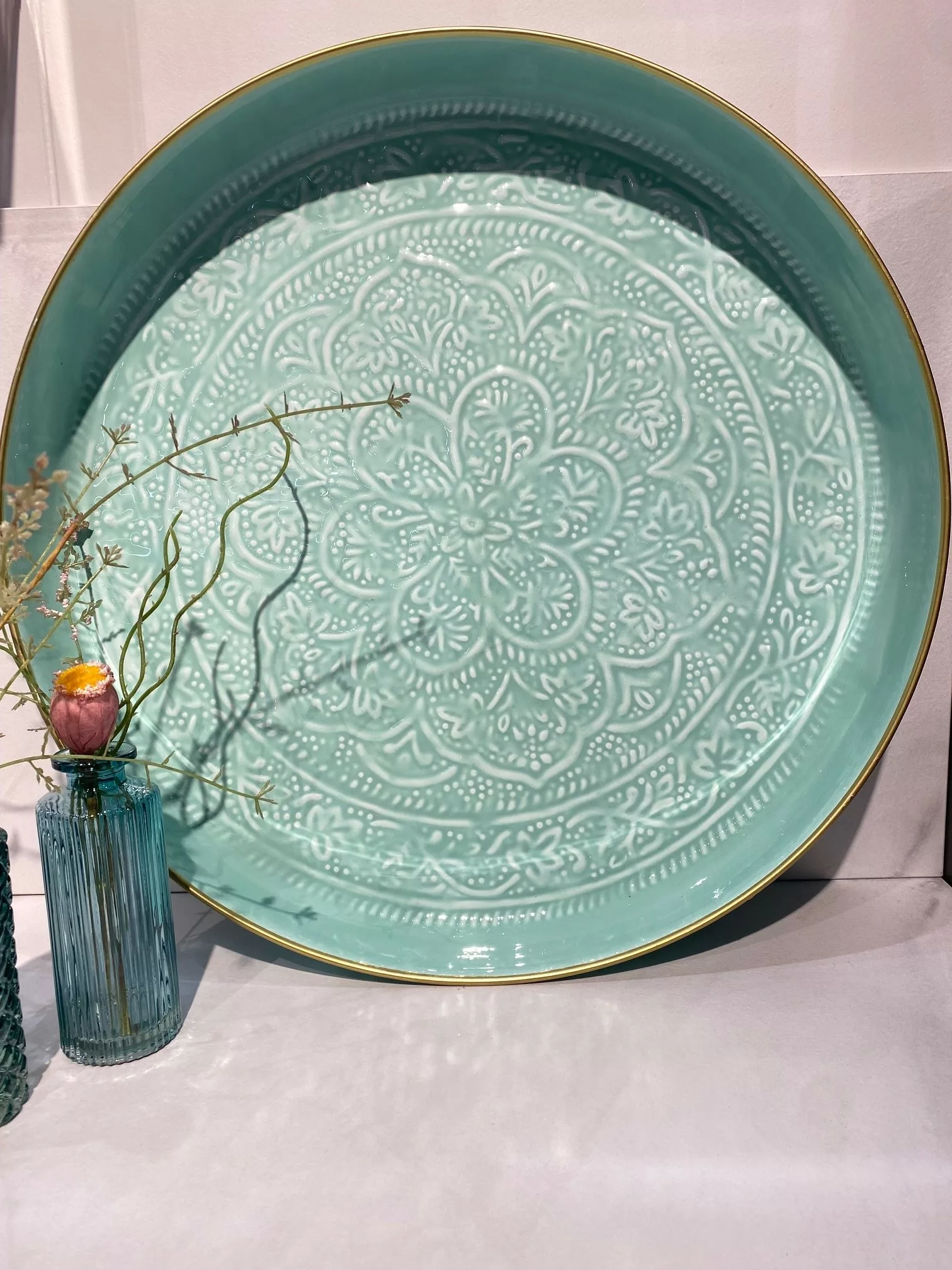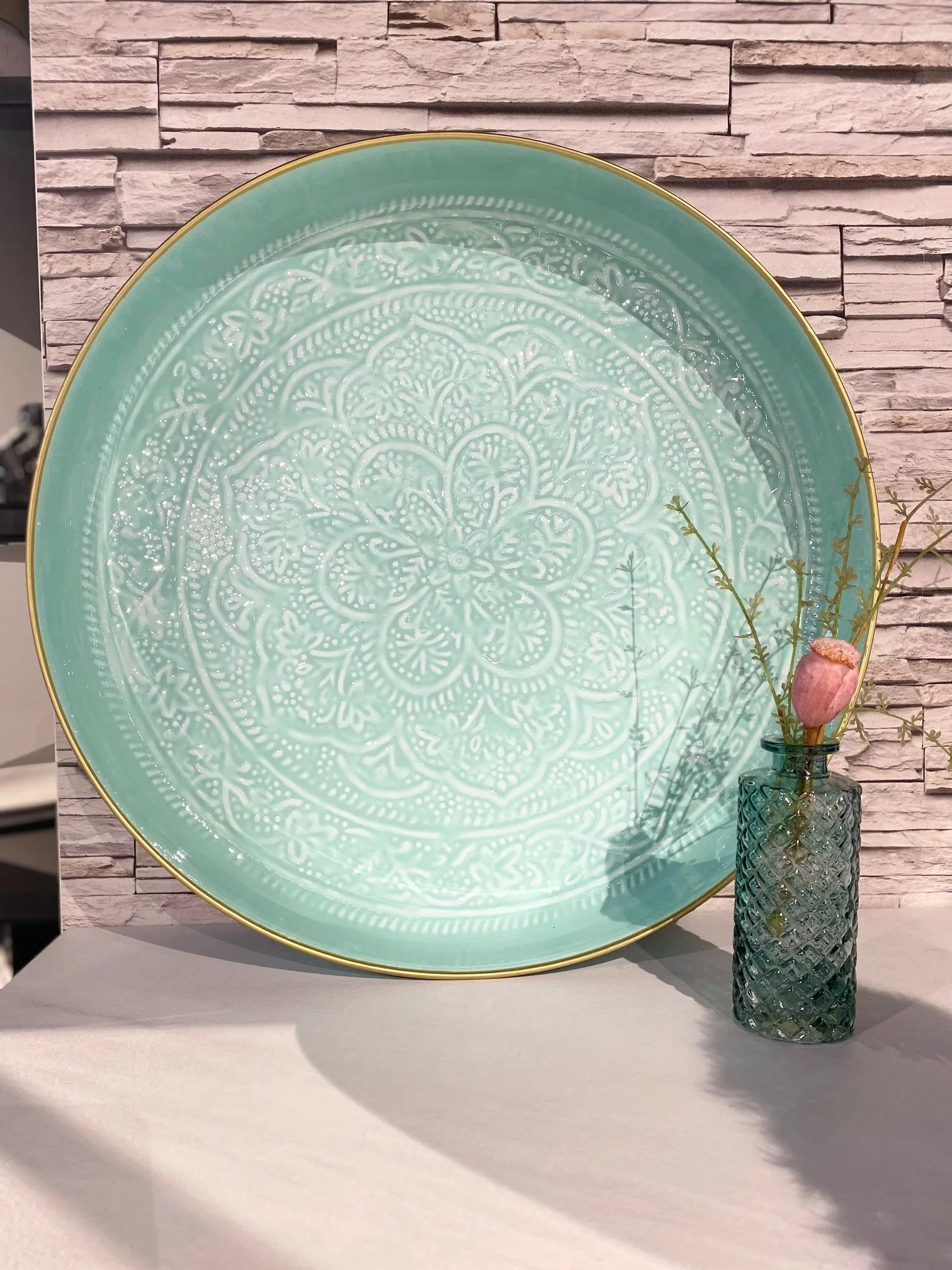 La couleur de l’été !!! Le vert céladon ….Craquez pour ces plateaux berbères vert céladon.