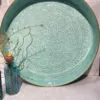 Plateaux berbères métal émaillé vert émeraude, diamètre de 45 cm ou 60 cm.