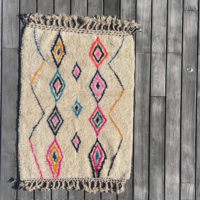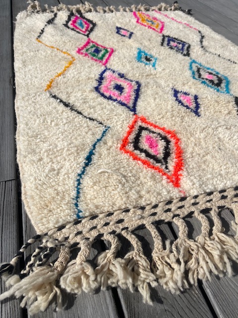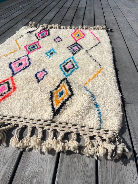 Apportez de la vie et de la chaleur à votre intérieur avec ce splendide tapis berbère Azilal coloré , confectionné artisanalement dans les montagnes de l’Atlas marocain. Chaque tapis est une œuvre unique, tissée avec patience et passion par des femmes berbères qui perpétuent un savoir-faire millénaire. Plus qu’un objet de décoration, ce tapis en laine est une véritable pièce d’art qui raconte une histoire à travers ses couleurs et ses motifs.